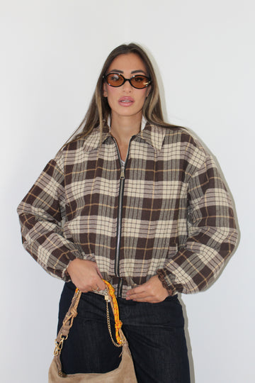 Jacket con colletto con fantasia a quadri e chiusura con zip