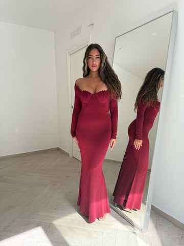Dress in versione long aderente con corpetto a forma di conchiglia e con coppe imbottite