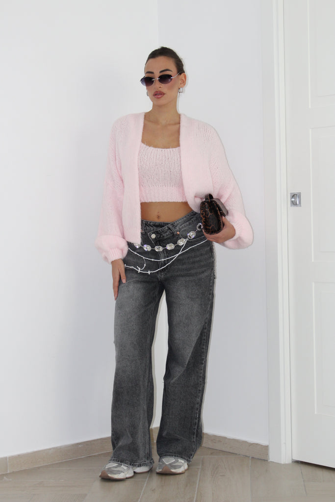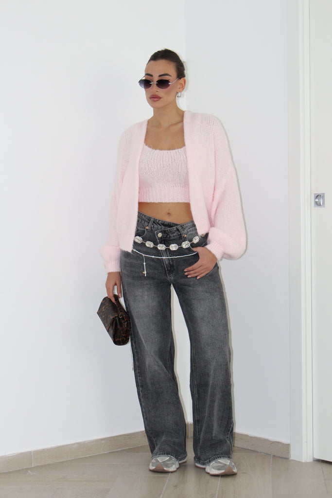 Set composto da cardigan e top con tessuto in lana