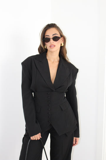 Tailleur composto da giacca con spalline rinforzate con corpetto e pantalone