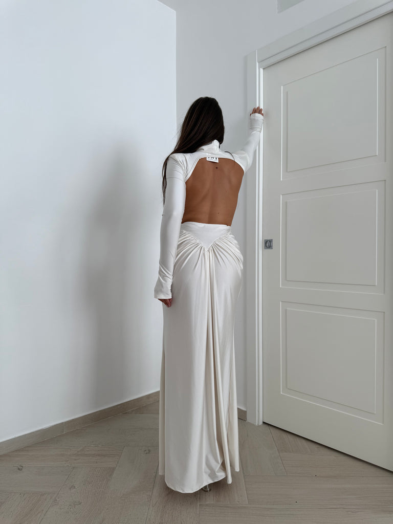 Dress in versione long con drappeggio e scollo sul retro