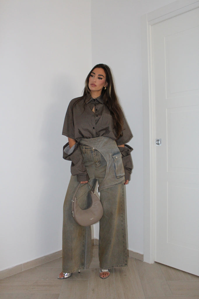 Jeans sabbiato con pattina cargo rimovibile